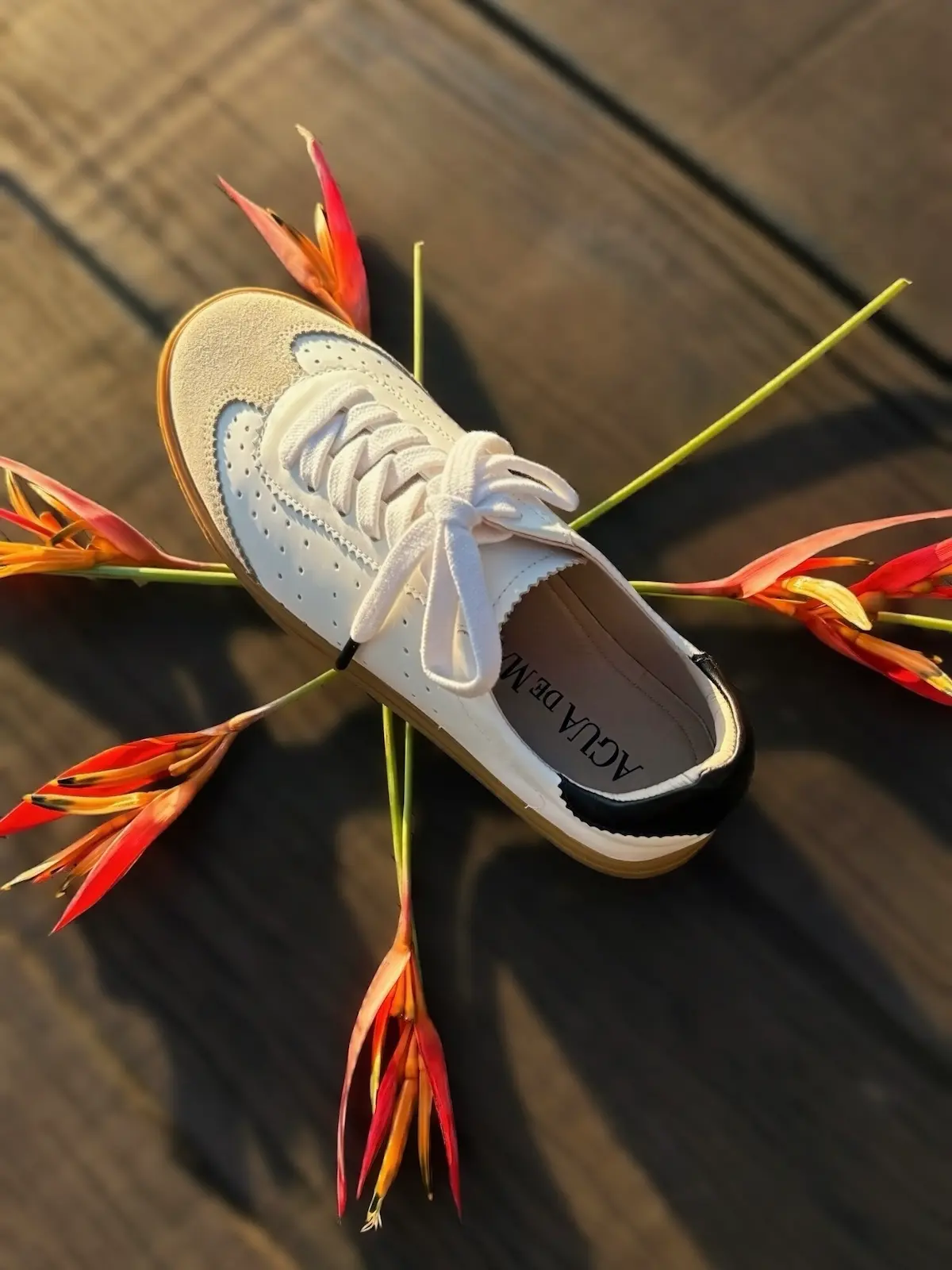 Tenis elaborados a mano en cuero blanco y negro , suaves , finos y diferentes